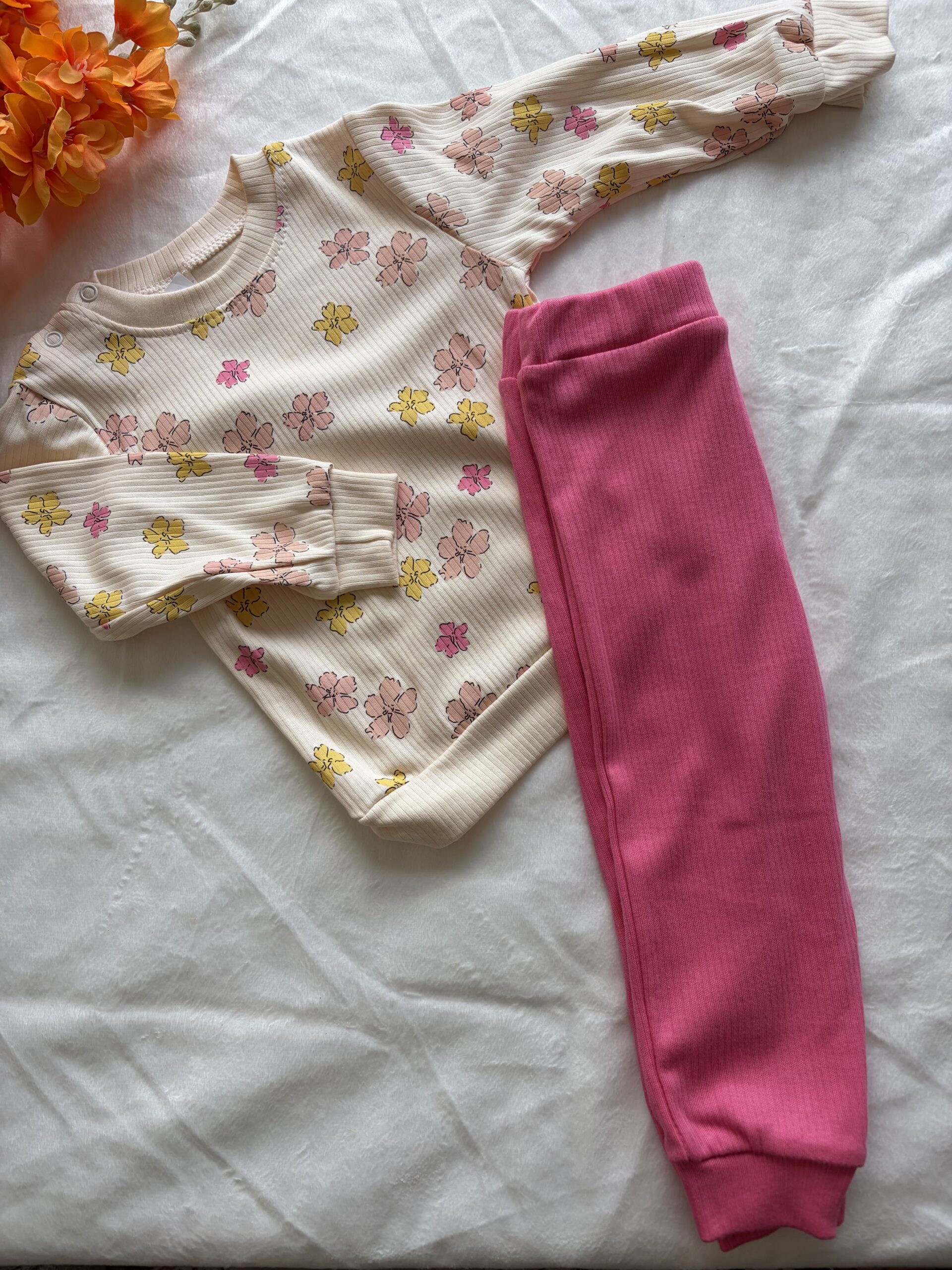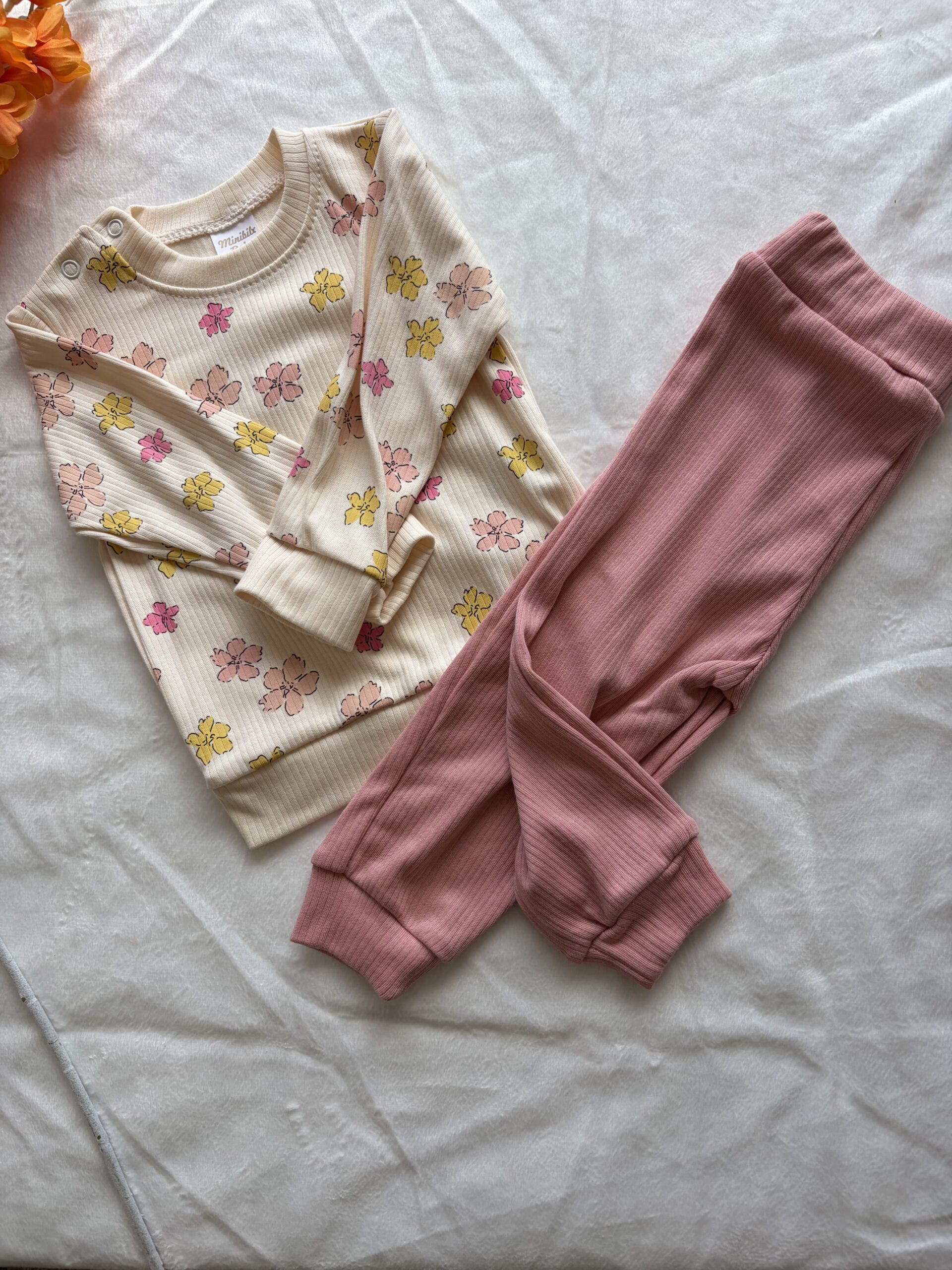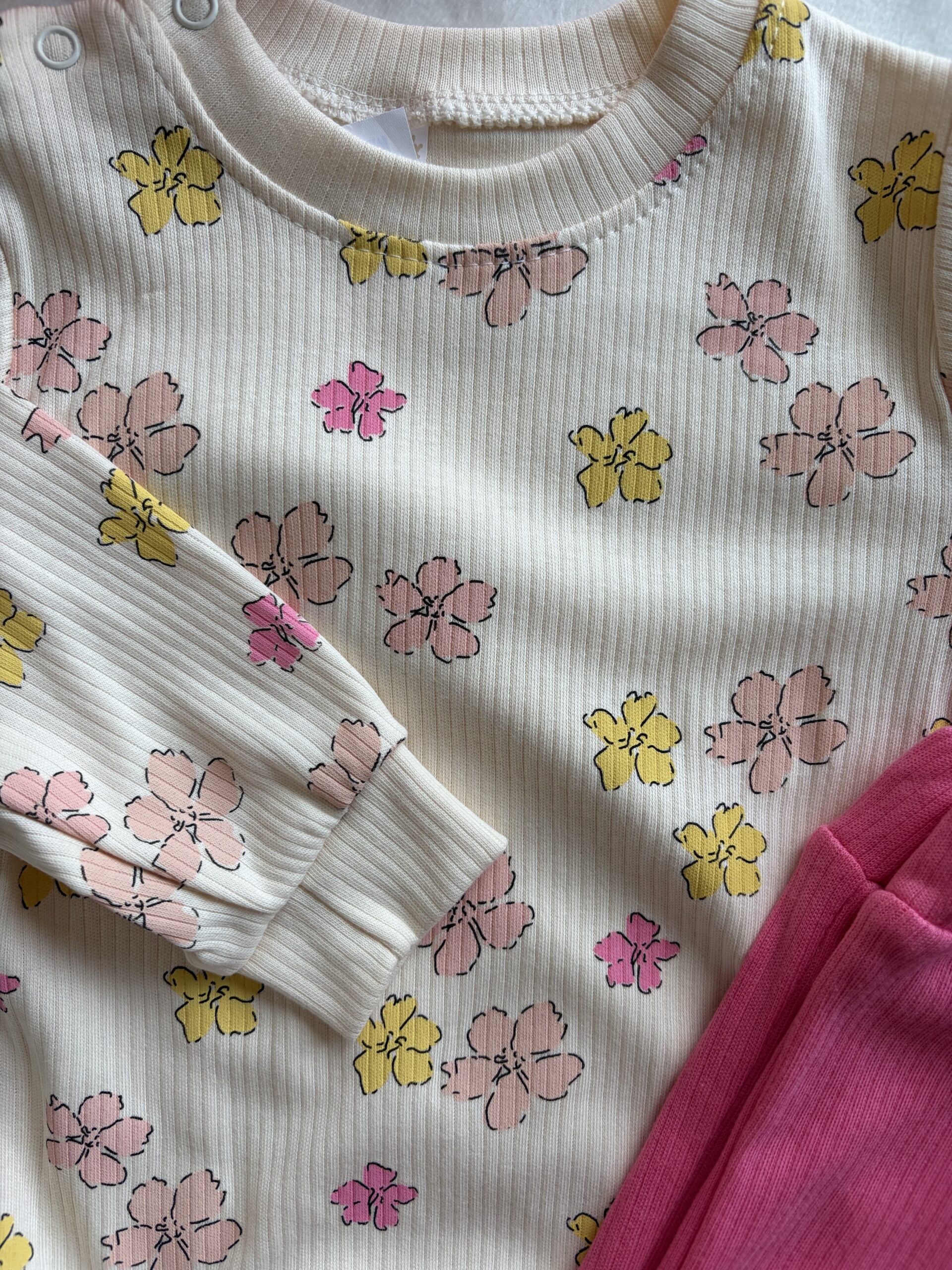Ensemble 2 pièces au design fleuri, parfait pour un look adorable et confortable 👶