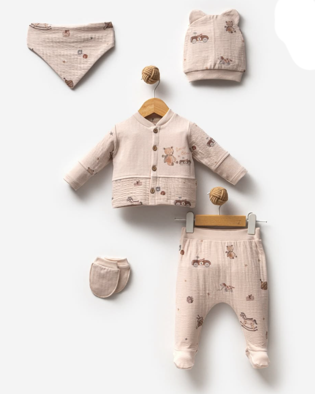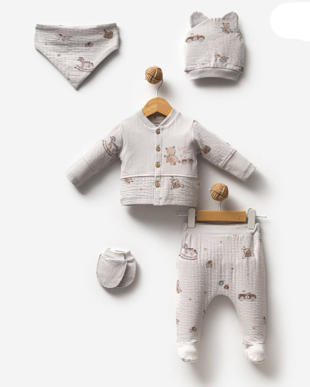 les sets naissance garçon 5 pièces BUBBLES enveloppent bébé de douceur grâce au coton bio organique 🌿