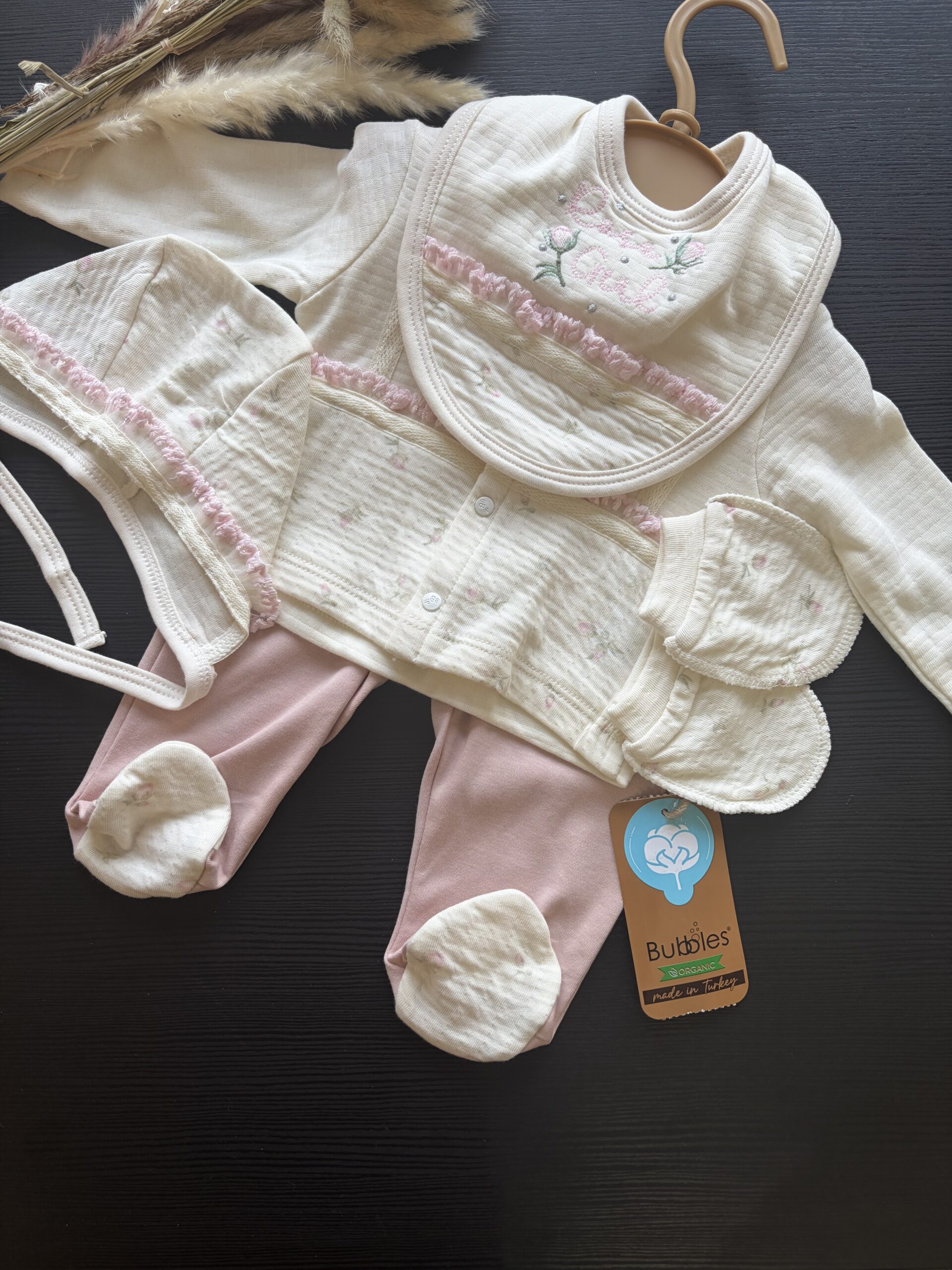 Set de 5 pièces naissance fille : 100% coton bio organique et design unique