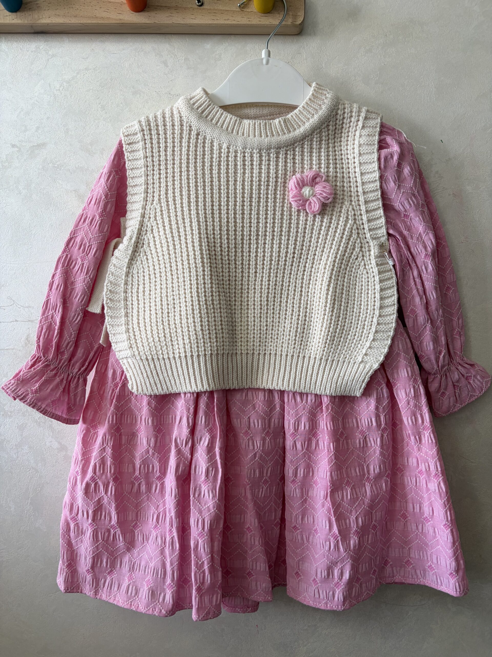 Robe 2 pièces élégante avec gilet en maille , pensée pour vos petites princesses