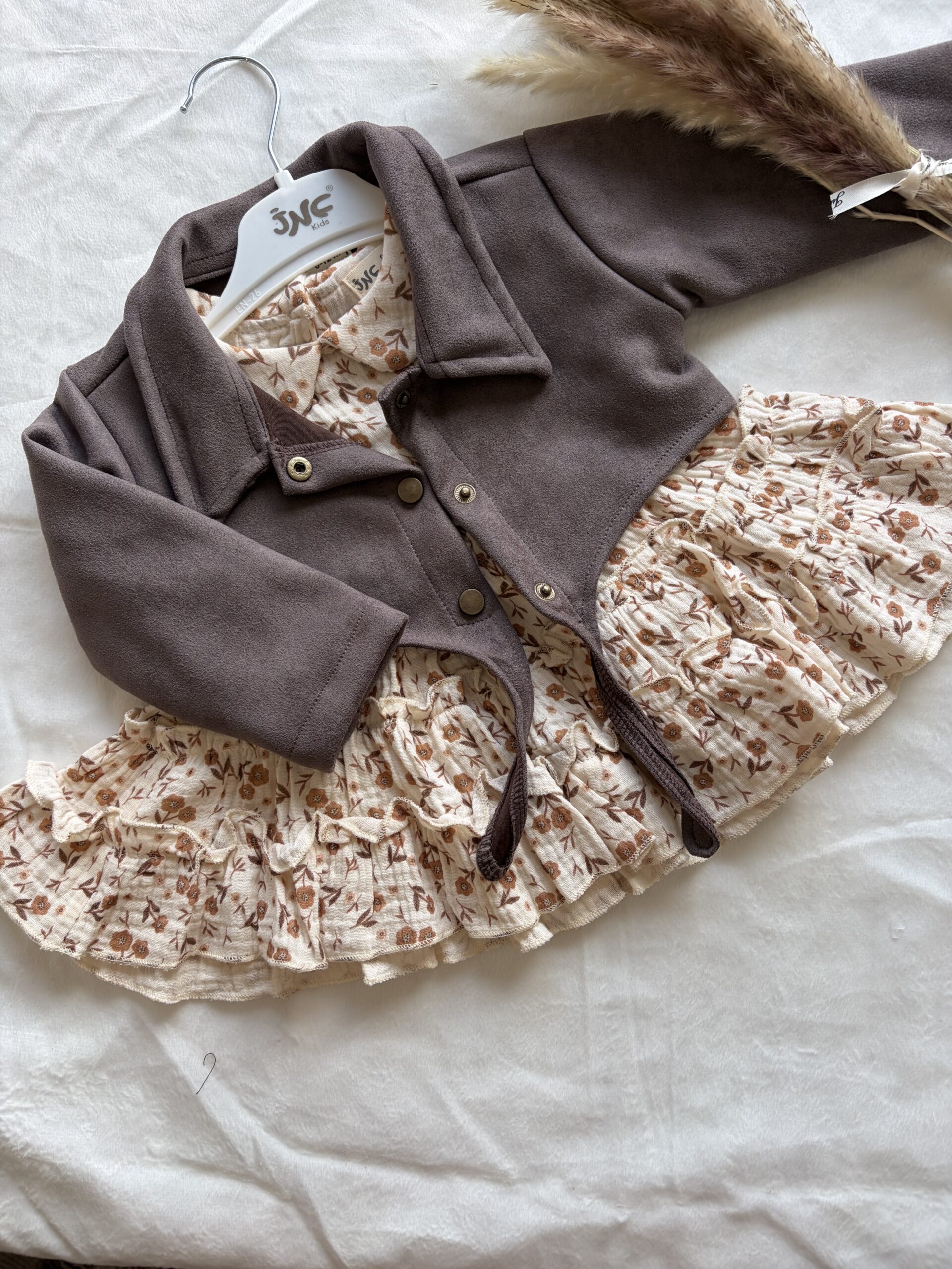 Ensemble bébé fille 2 pièces : Robe + Gilet. qualité premium